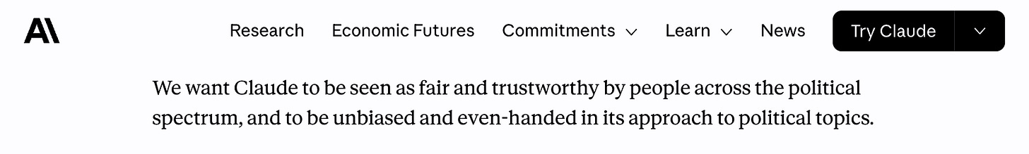 Last week Anthropic published an article on their efforts to measure and mitigate political bias in Claude. Anthropic made their evaluation tool open-source, “so that AI developers can reproduce [their] findings, run further tests, and work towards even better measures of political even-handedness.”